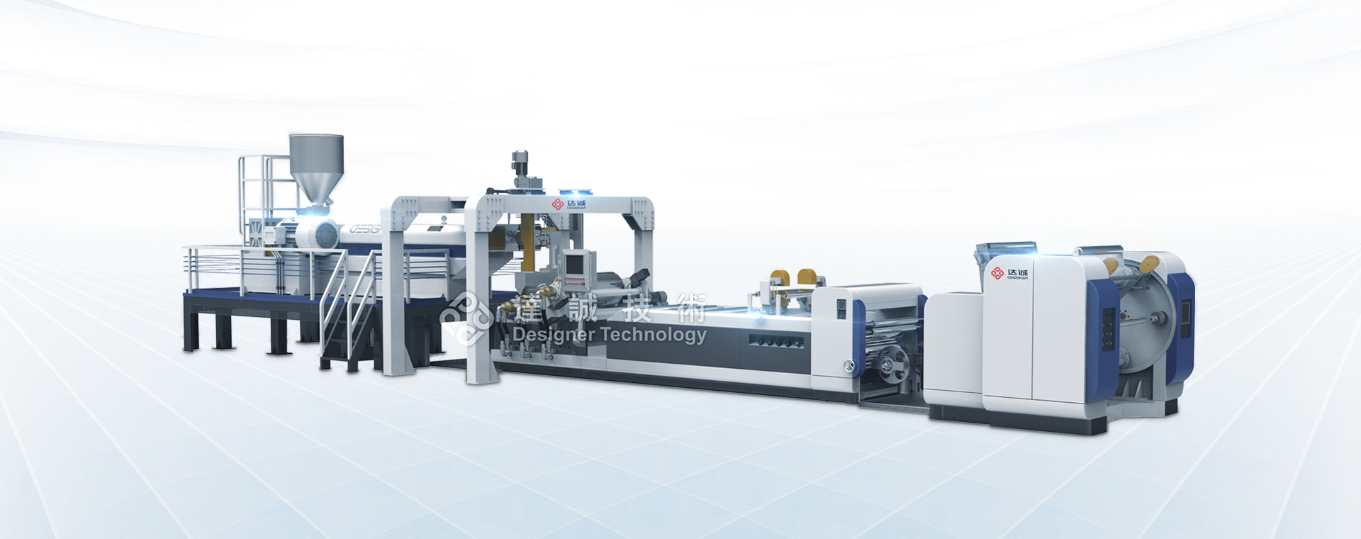擠出機配備熔體計量泵定量穩(wěn)壓輸出,并且設(shè)備壓力與速度閉環(huán)自動控制。